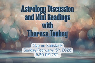 Welcome, I am Theresa Touhey, an astrologer using the wisdom of natal chart placements to explore current energy, while offering insightful analysis on society, politics, and current events.